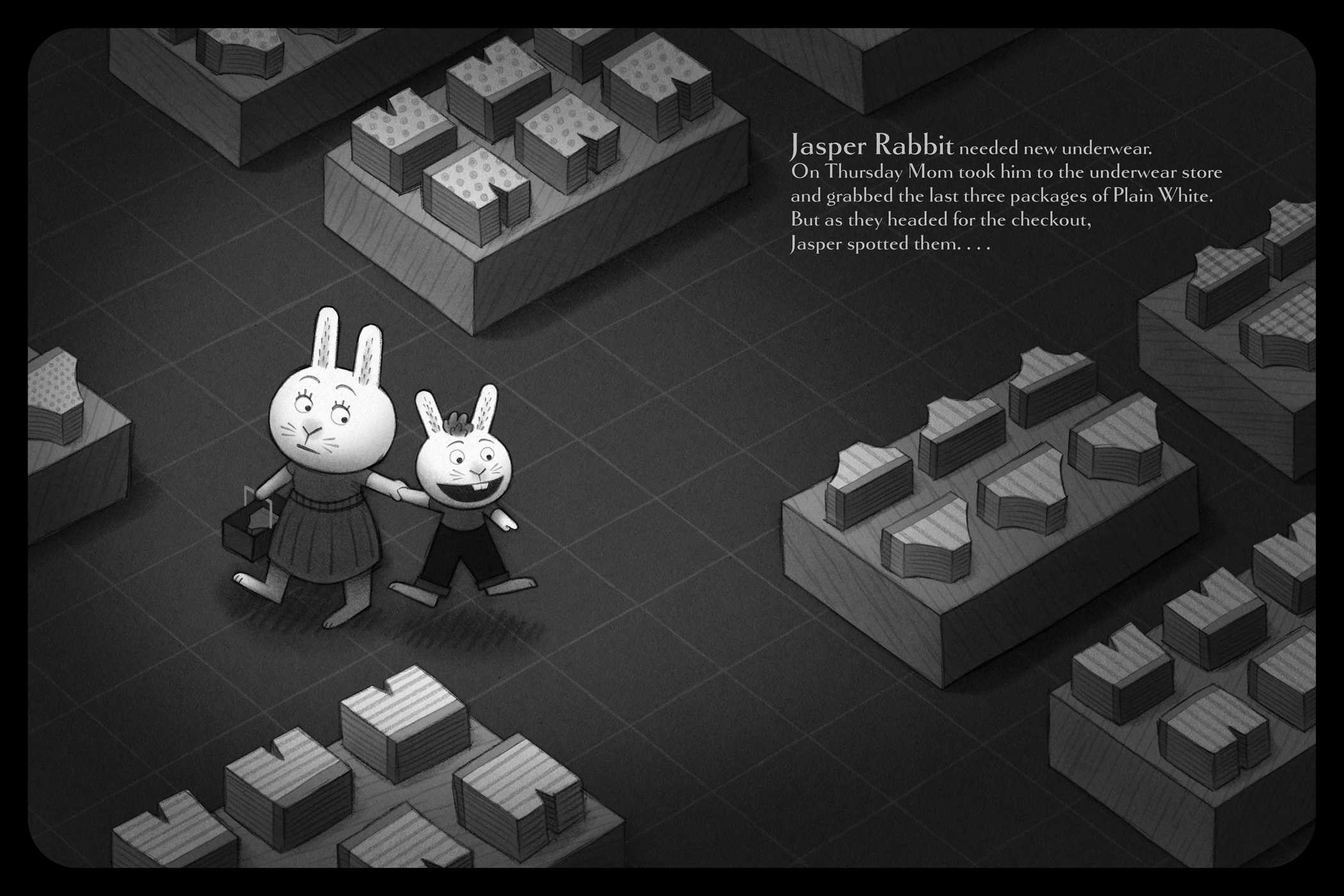 토끼 재스퍼는 새 팬티가 필요했어요.